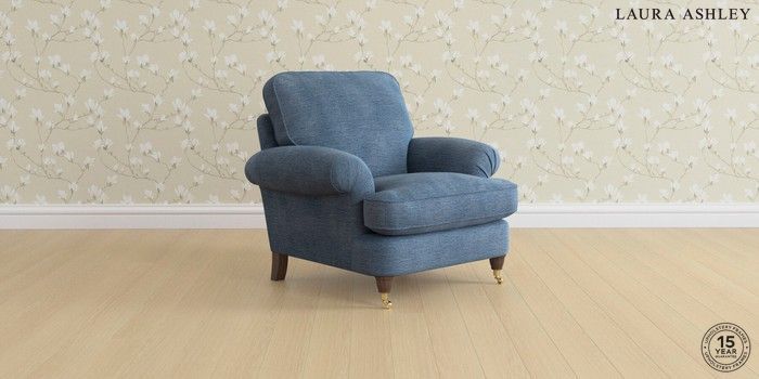 6.12.1 Buy Beaumaris by Laura Ashley Armchair Edwin Chenille Seaspray Blue Low Brass Castor - Chestnut from the Next UK online shop Click here to use our accessible website