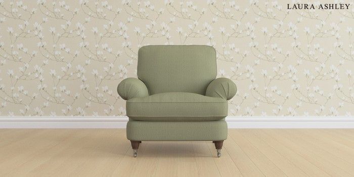 6.12.1 Buy Beaumaris by Laura Ashley Armchair Edwin Herringbone Hedgerow Green Low Chrome Castor - Chestnut from the Next UK online shop Click here to use our accessible website