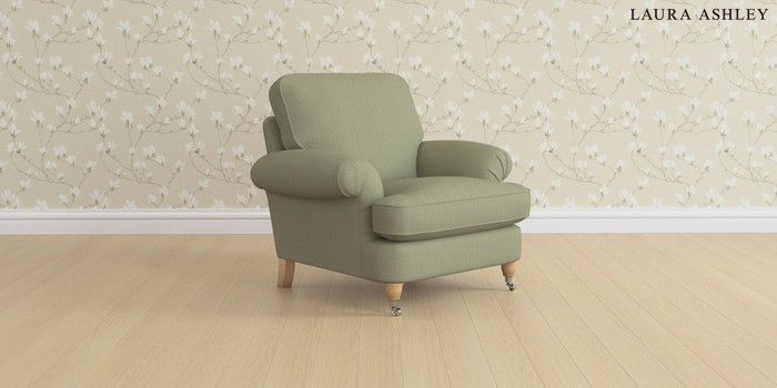 6.12.1 Buy Beaumaris by Laura Ashley Armchair Edwin Herringbone Hedgerow Green Low Chrome Castor - Light Oak from the Next UK online shop Click here to use our accessible website