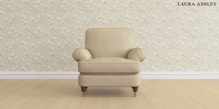 6.12.1 Buy Beaumaris by Laura Ashley Armchair Edwin Herringbone Natural Low Chrome Castor - Chestnut from the Next UK online shop Click here to use our accessible website