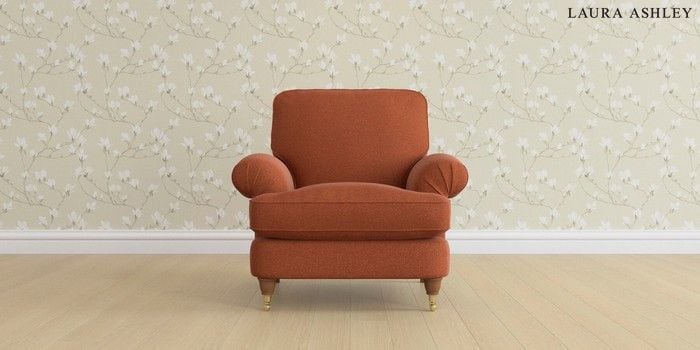 6.12.1 Buy Beaumaris by Laura Ashley Armchair Harley Terracotta Orange Low Brass Castor - Teak from the Next UK online shop Click here to use our accessible website
