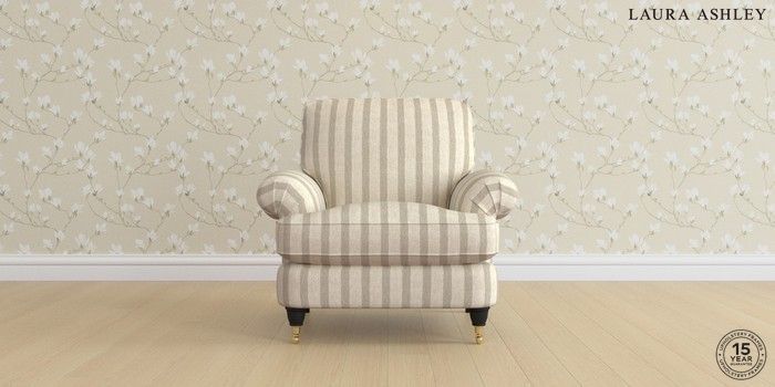 6.12.1 Buy Beaumaris by Laura Ashley Armchair Kinsham Stripe Natural Low Brass Castor - Black from the Next UK online shop Click here to use our accessible website
