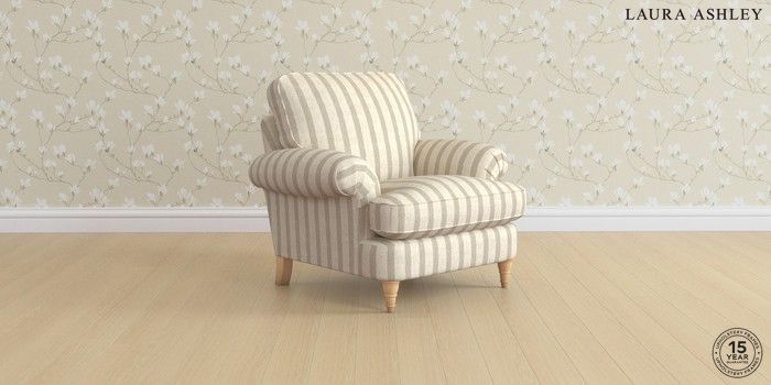 6.12.1 Buy Beaumaris by Laura Ashley Armchair Kinsham Stripe Natural Low Turned - Light Oak from the Next UK online shop Click here to use our accessible website