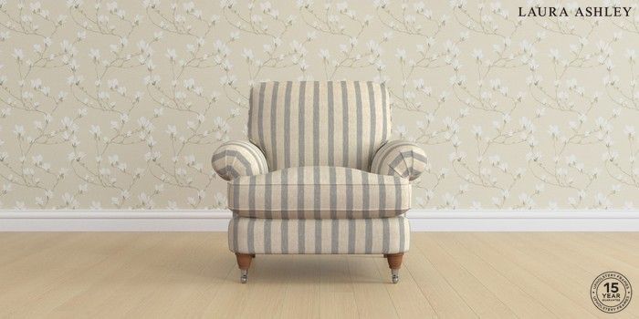 6.12.1 Buy Beaumaris by Laura Ashley Armchair Kinsham Stripe Seaspray Blue Low Chrome Castor - Teak from the Next UK online shop Click here to use our accessible website