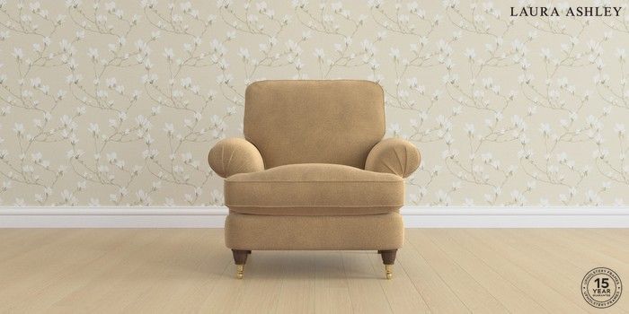 6.12.1 Buy Beaumaris by Laura Ashley Armchair Lundar Chenille Caramel Natural Low Brass Castor - Chestnut from the Next UK online shop Click here to use our accessible website