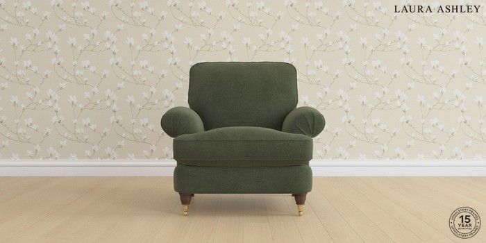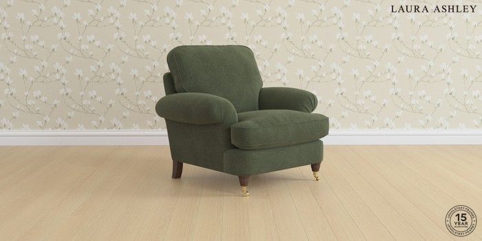 6.12.1 Buy Beaumaris by Laura Ashley Armchair Lundar Chenille Ivy Green Low Brass Castor - Chestnut from the Next UK online shop Click here to use our accessible website
