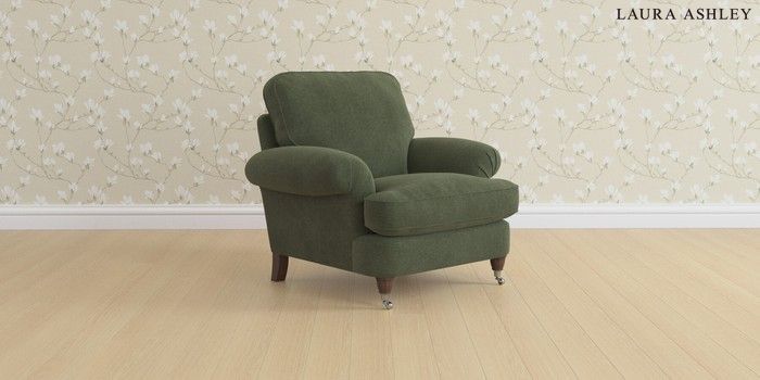 6.12.1 Buy Beaumaris by Laura Ashley Armchair Lundar Chenille Ivy Green Low Chrome Castor - Chestnut from the Next UK online shop Click here to use our accessible website
