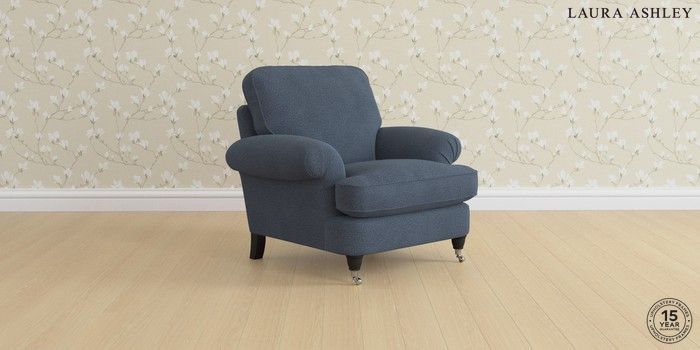 6.12.1 Buy Beaumaris by Laura Ashley Armchair Lundar Chenille Navy Blue Low Chrome Castor - Black from the Next UK online shop Click here to use our accessible website
