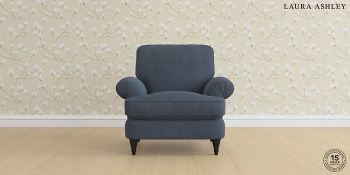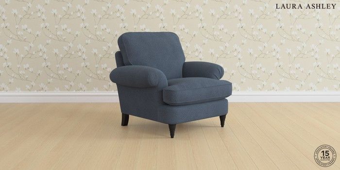 6.12.1 Buy Beaumaris by Laura Ashley Armchair Lundar Chenille Navy Blue Low Turned - Black from the Next UK online shop Click here to use our accessible website