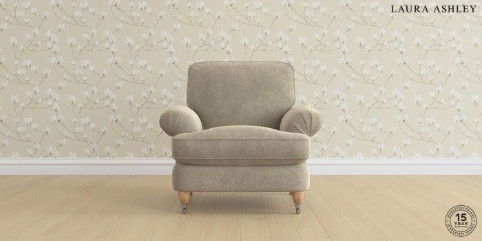 6.12.1 Buy Beaumaris by Laura Ashley Armchair Lundar Chenille Truffle Natural Low Chrome Castor - Light Oak from the Next UK online shop Click here to use our accessible website