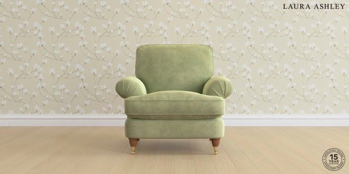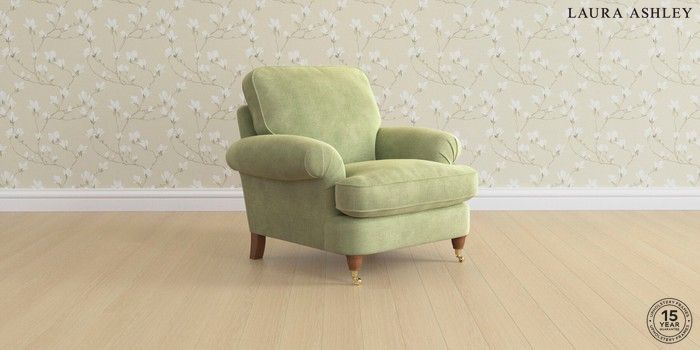 6.12.1 Buy Beaumaris by Laura Ashley Armchair Orla Pale Hedgerow Green Low Brass Castor - Teak from the Next UK online shop Click here to use our accessible website