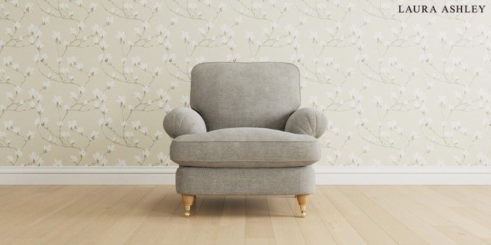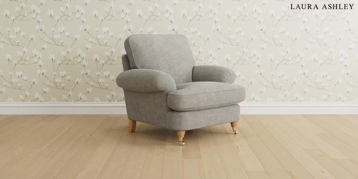 6.12.1 Buy Beaumaris by Laura Ashley Armchair Orla Pale Steel Grey Low Brass Castor - Light Oak from the Next UK online shop Click here to use our accessible website