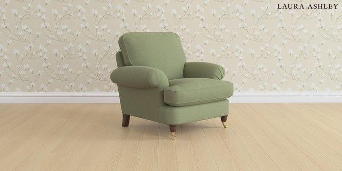 6.12.1 Buy Beaumaris by Laura Ashley Armchair Peyton Hedgerow Green Low Brass Castor - Chestnut from the Next UK online shop Click here to use our accessible website