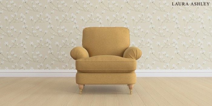 6.12.1 Buy Beaumaris by Laura Ashley Armchair Peyton Ochre Yellow Low Brass Castor - Light Oak from the Next UK online shop Click here to use our accessible website