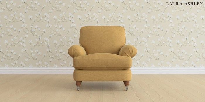 6.12.13 Buy Beaumaris by Laura Ashley Armchair Peyton Ochre Yellow Low Chrome Castor - Teak from the Next UK online shop Click here to use our accessible website