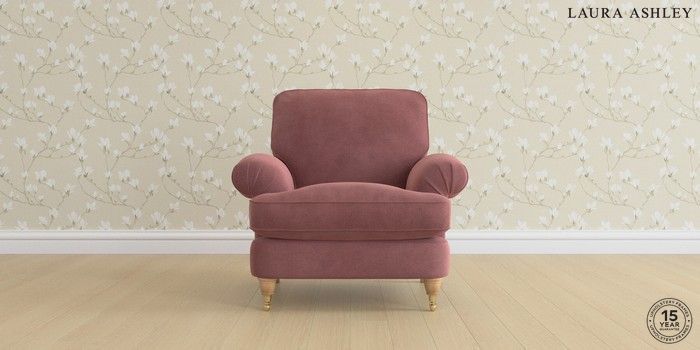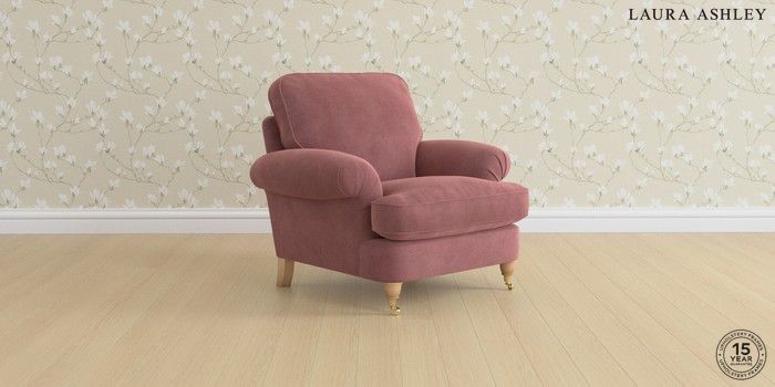 6.12.1 Buy Beaumaris by Laura Ashley Armchair Peyton Plum Purple Low Brass Castor - Light Oak from the Next UK online shop Click here to use our accessible website