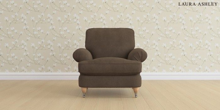 6.12.1 Buy Beaumaris by Laura Ashley Armchair Sinclair Cord Chocolate Brown Low Chrome Castor - Light Oak from the Next UK online shop Click here to use our accessible website