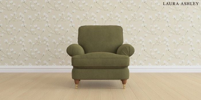 6.12.1 Buy Beaumaris by Laura Ashley Armchair Sinclair Cord Ivy Green Low Brass Castor - Teak from the Next UK online shop Click here to use our accessible website