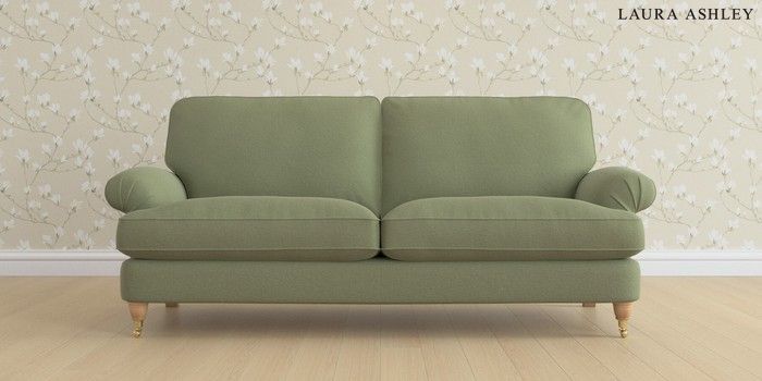 6.12.1 Buy Beaumaris by Laura Ashley 3 Seater Sofa Peyton Hedgerow Green Low Brass Castor - Light Oak from the Next UK online shop Click here to use our accessible website