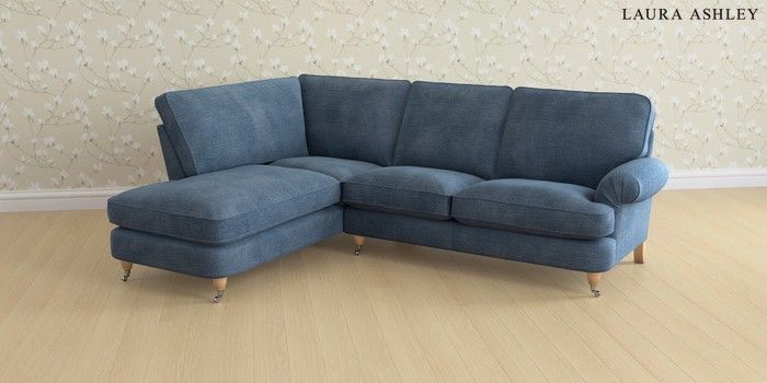 6.12.13 Buy Beaumaris by Laura Ashley Medium Corner Sofa - Universal Edwin Chenille Seaspray Blue Low Chrome Castor - Light Oak from the Next UK online shop Click here to use our accessible website