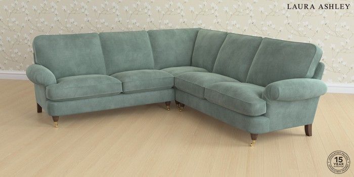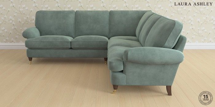 6.12.13 Buy Beaumaris by Laura Ashley Medium Corner Sofa - Universal Ailsworth Fern Green Low Brass Castor - Chestnut from the Next UK online shop Click here to use our accessible website
