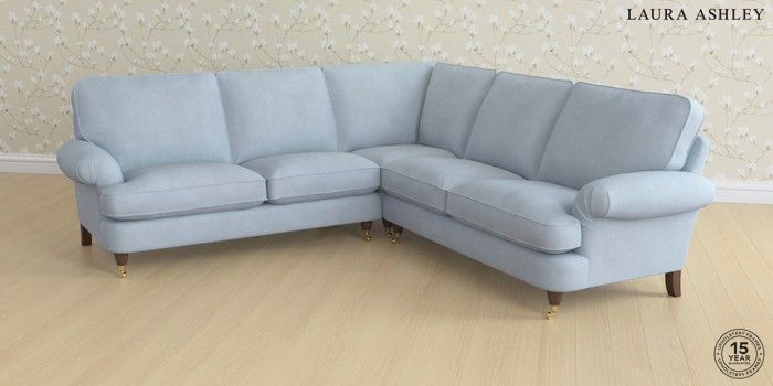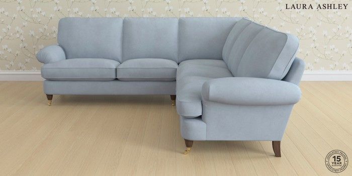 6.12.1 Buy Beaumaris by Laura Ashley Medium Corner Sofa - Universal Ailsworth Newport Blue Low Brass Castor - Chestnut from the Next UK online shop Click here to use our accessible website