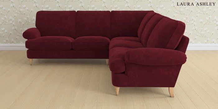 6.12.1 Buy Beaumaris by Laura Ashley Medium Corner Sofa - Universal Alwyn Velvet Burgundy Red Low Turned - Light Oak from the Next UK online shop Click here to use our accessible website