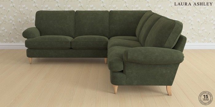 6.12.1 Buy Beaumaris by Laura Ashley Medium Corner Sofa - Universal Alwyn Velvet Ivy Green Low Turned - Light Oak from the Next UK online shop Click here to use our accessible website