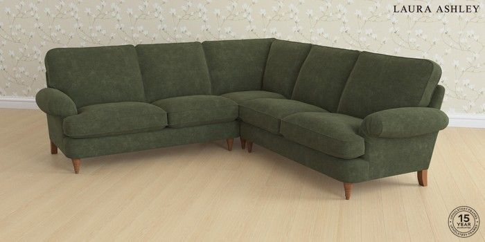 6.12.1 Buy Beaumaris by Laura Ashley Medium Corner Sofa - Universal Alwyn Velvet Ivy Green Low Turned - Teak from the Next UK online shop Click here to use our accessible website