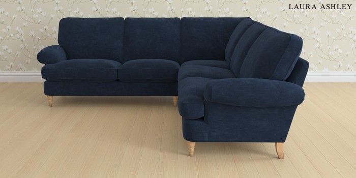 6.12.1 Buy Beaumaris by Laura Ashley Medium Corner Sofa - Universal Alwyn Velvet Midnight Navy Low Turned - Light Oak from the Next UK online shop Click here to use our accessible website