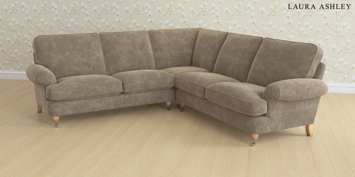 6.12.1 Buy Beaumaris by Laura Ashley Medium Corner Sofa - Universal Alwyn Velvet Truffle Natural Low Chrome Castor - Light Oak from the Next UK online shop Click here to use our accessible website