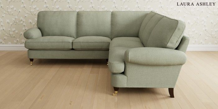 6.12.1 Buy Beaumaris by Laura Ashley Medium Corner Sofa - Universal Anneliese Sage Green Low Brass Castor - Chestnut from the Next UK online shop Click here to use our accessible website