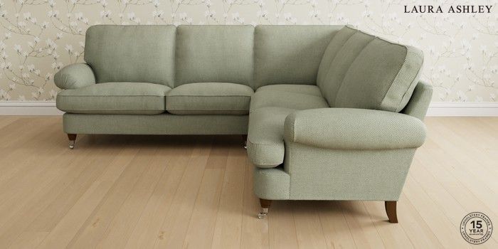 6.12.1 Buy Beaumaris by Laura Ashley Medium Corner Sofa - Universal Anneliese Sage Green Low Chrome Castor - Teak from the Next UK online shop Click here to use our accessible website
