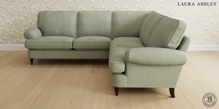 6.12.1 Buy Beaumaris by Laura Ashley Medium Corner Sofa - Universal Anneliese Sage Green Low Turned - Chestnut from the Next UK online shop Click here to use our accessible website