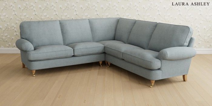 6.12.1 Buy Beaumaris by Laura Ashley Medium Corner Sofa - Universal Anneliese Seaspray Blue Low Brass Castor - Light Oak from the Next UK online shop Click here to use our accessible website