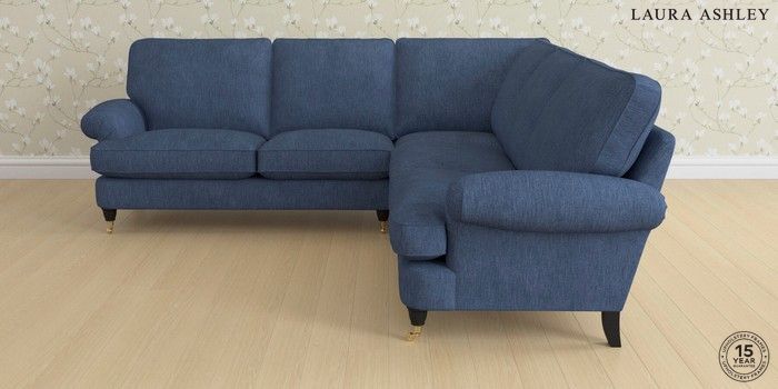 6.12.1 Buy Beaumaris by Laura Ashley Medium Corner Sofa - Universal Bainton Midnight Navy Low Brass Castor - Black from the Next UK online shop Click here to use our accessible website
