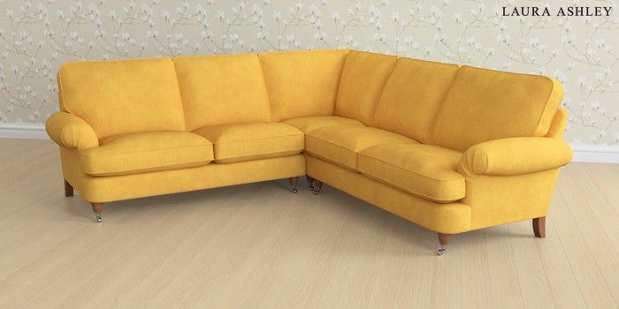 6.12.1 Buy Beaumaris by Laura Ashley Medium Corner Sofa - Universal Bainton Ochre Yellow Low Chrome Castor - Teak from the Next UK online shop Click here to use our accessible website