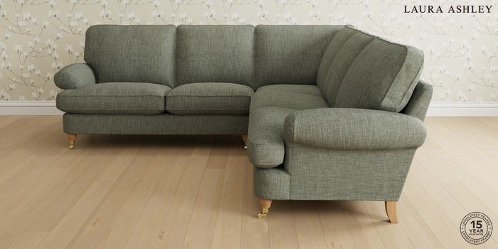 6.12.1 Buy Beaumaris by Laura Ashley Medium Corner Sofa - Universal Bainton Sage Green Low Brass Castor - Light Oak from the Next UK online shop Click here to use our accessible website