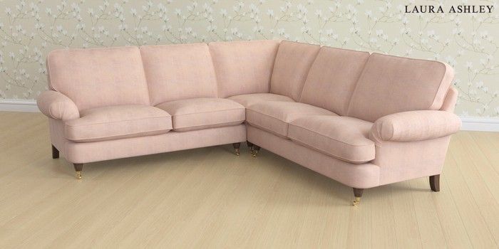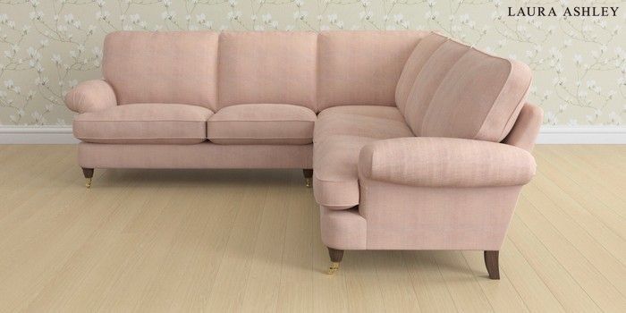 6.12.1 Buy Beaumaris by Laura Ashley Medium Corner Sofa - Universal Edwin Chenille Blush Pink Low Brass Castor - Chestnut from the Next UK online shop Click here to use our accessible website