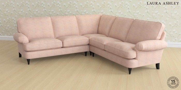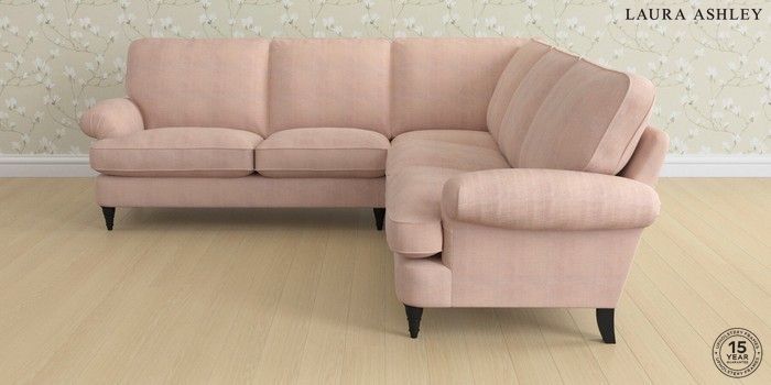6.12.1 Buy Beaumaris by Laura Ashley Medium Corner Sofa - Universal Edwin Chenille Blush Pink Low Turned - Black from the Next UK online shop Click here to use our accessible website
