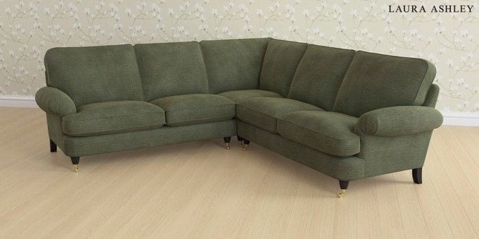 6.12.1 Buy Beaumaris by Laura Ashley Medium Corner Sofa - Universal Edwin Chenille Hedgerow Green Low Brass Castor - Black from the Next UK online shop Click here to use our accessible website