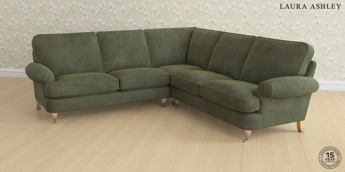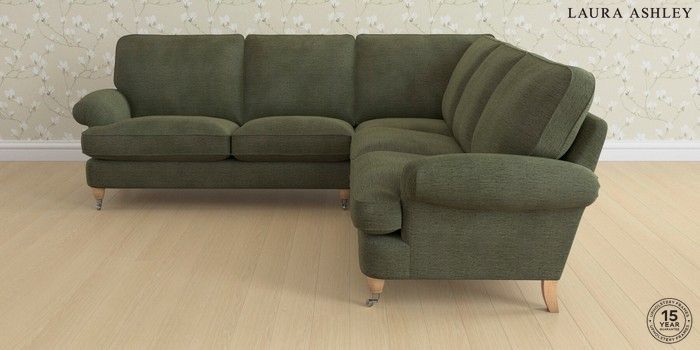 6.12.1 Buy Beaumaris by Laura Ashley Medium Corner Sofa - Universal Edwin Chenille Hedgerow Green Low Chrome Castor - Light Oak from the Next UK online shop Click here to use our accessible website
