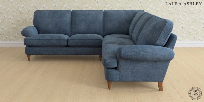 6.12.1 Buy Beaumaris by Laura Ashley Medium Corner Sofa - Universal Edwin Chenille Seaspray Blue Low Turned - Teak from the Next UK online shop Click here to use our accessible website