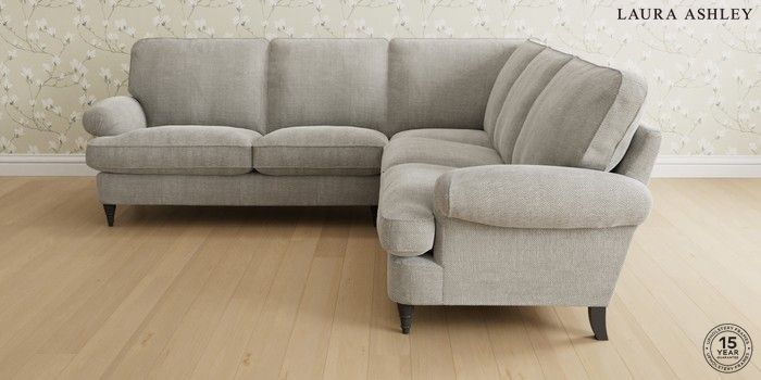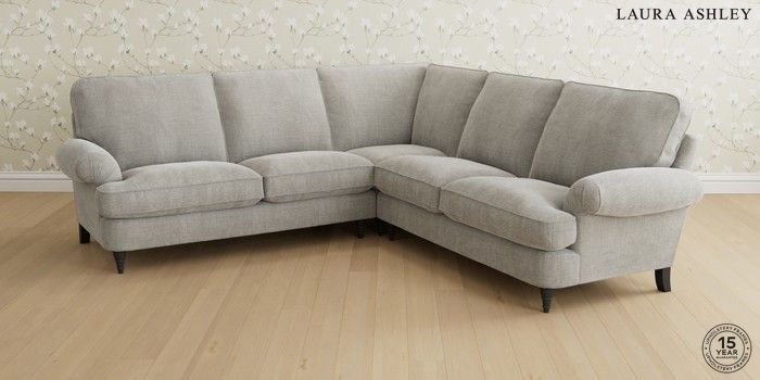 6.12.1 Buy Beaumaris by Laura Ashley Medium Corner Sofa - Universal Edwin Chenille Silver Grey Low Turned - Black from the Next UK online shop Click here to use our accessible website