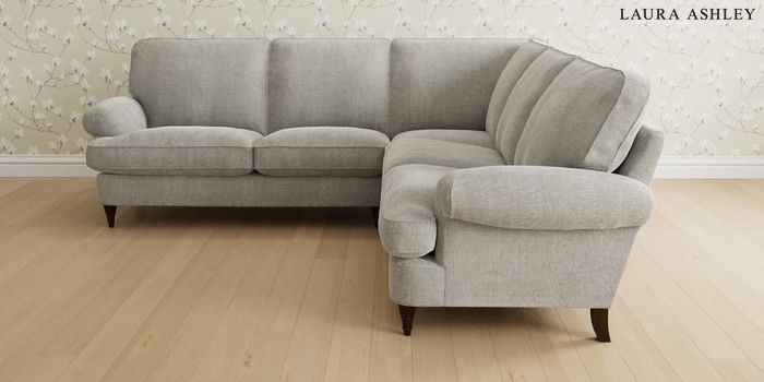 6.12.1 Buy Beaumaris by Laura Ashley Medium Corner Sofa - Universal Edwin Chenille Silver Grey Low Turned - Chestnut from the Next UK online shop Click here to use our accessible website