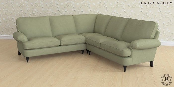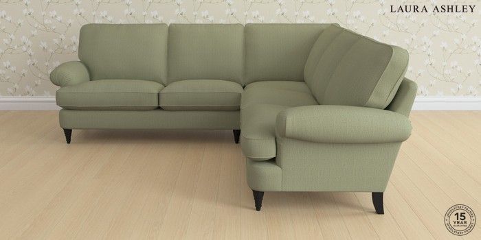6.12.1 Buy Beaumaris by Laura Ashley Medium Corner Sofa - Universal Edwin Herringbone Hedgerow Green Low Turned - Black from the Next UK online shop Click here to use our accessible website