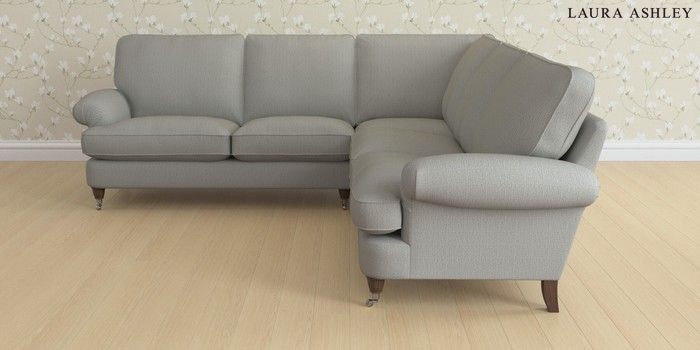 6.12.1 Buy Beaumaris by Laura Ashley Medium Corner Sofa - Universal Edwin Herringbone Pale Steel Grey Low Chrome Castor - Chestnut from the Next UK online shop Click here to use our accessible website