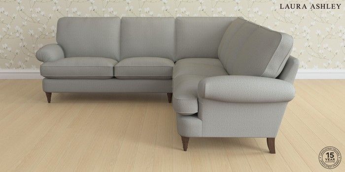 6.12.1 Buy Beaumaris by Laura Ashley Medium Corner Sofa - Universal Edwin Herringbone Pale Steel Grey Low Turned - Chestnut from the Next UK online shop Click here to use our accessible website