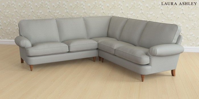 6.12.1 Buy Beaumaris by Laura Ashley Medium Corner Sofa - Universal Edwin Herringbone Pale Steel Grey Low Turned - Teak from the Next UK online shop Click here to use our accessible website