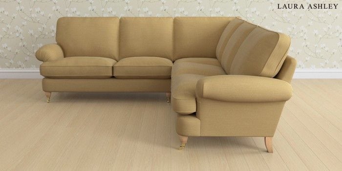 6.12.1 Buy Beaumaris by Laura Ashley Medium Corner Sofa - Universal Kinsham Ochre Yellow Low Brass Castor - Light Oak from the Next UK online shop Click here to use our accessible website